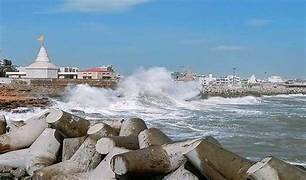 तूफ़ान के चलते समुद्र में ऊँची लहरें उठीं और तटीय इलाकों में बाढ़ जैसी स्थिति बन गई।